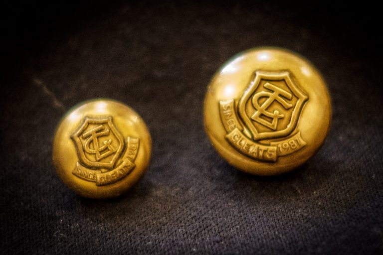 ネイビーとライトグレーの二色。単色ながらショルダーとリブの編み地を変えることで、色の濃淡を出し、袖付け、サイド、背中の合わせもカットオフ風に仕上げ、ラインを強調しています。