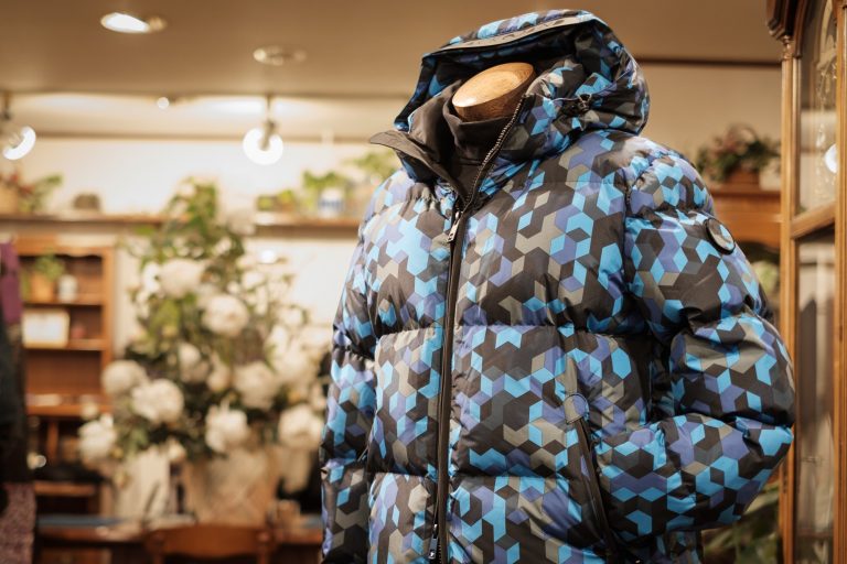 襟は、ロールさせスタンドタイプに、ボディーラインにフィットするキレイなシルエット。見た目以上の軽さからの来やすさが特徴、そして安心のメイド イン ジャパン。